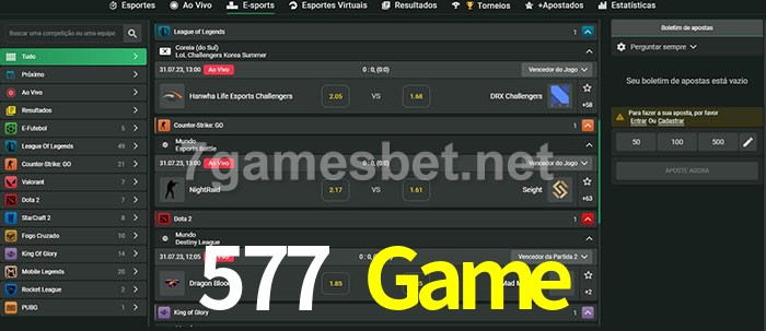 O 577 Game oferece uma grande seleção de opções de apostas em e-sports com probabilidades competitivas